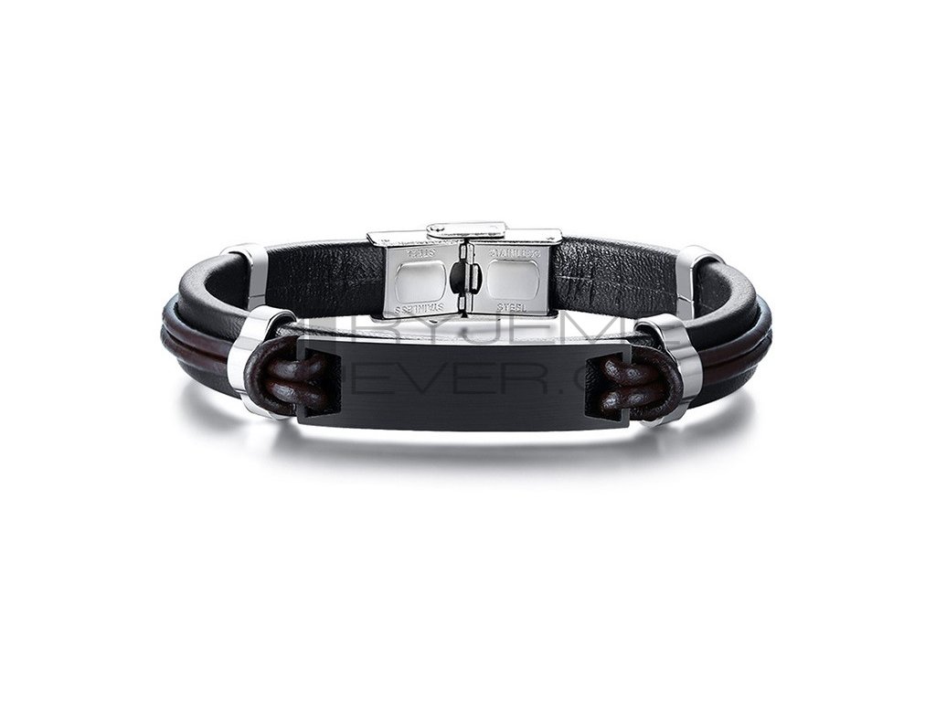 Kožený náramek se sponou s chirurgické antialergické oceli 316L. Vhodný na gravírovaní textu, loga. Délka 21,5cm. Úprava délky za poplatek 99,-.