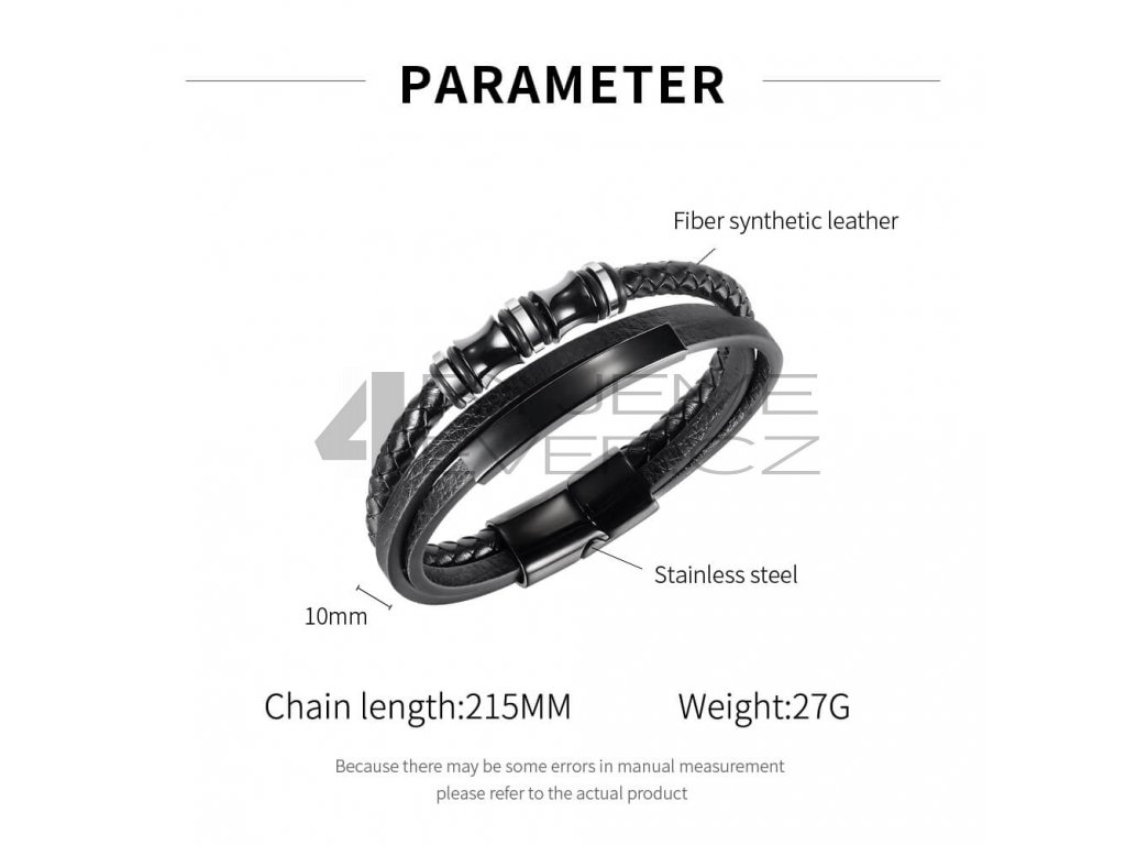 Kožený náramek se sponou s chirurgické antialergické oceli 316L. Vhodný na gravírovaní textu, loga. Délka 21,5cm. Úprava délky za poplatek 99,-.