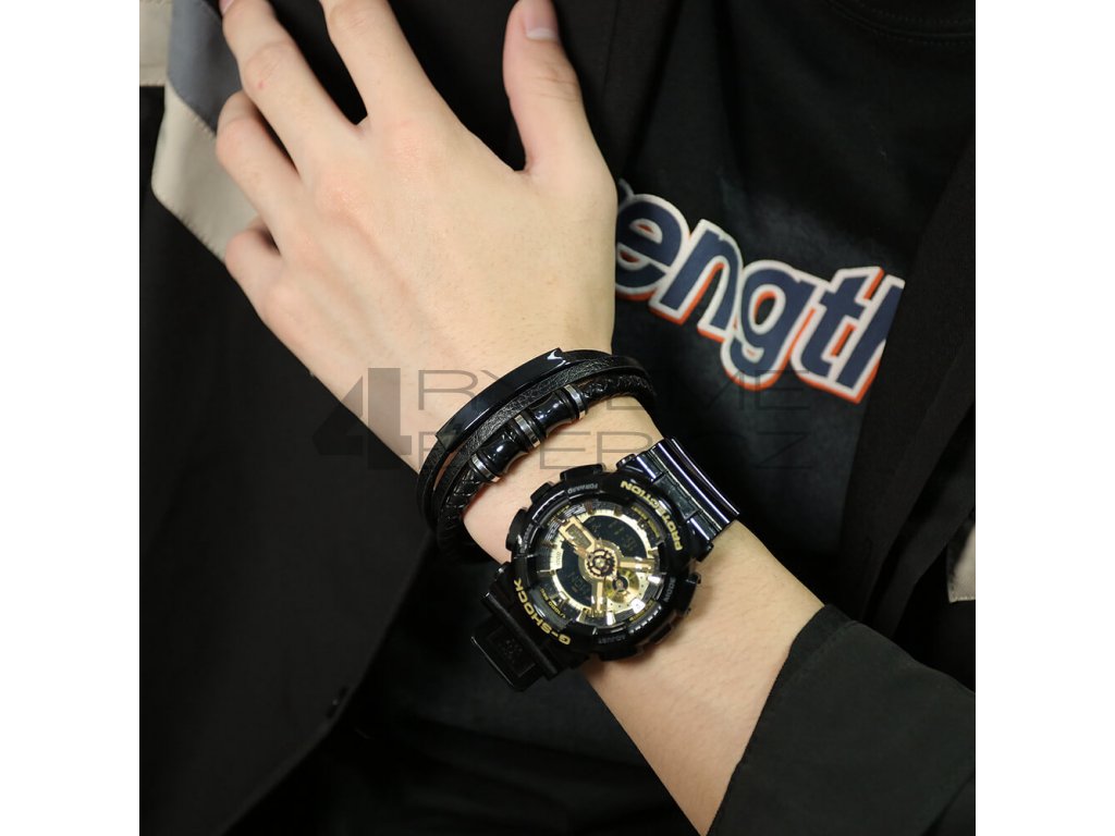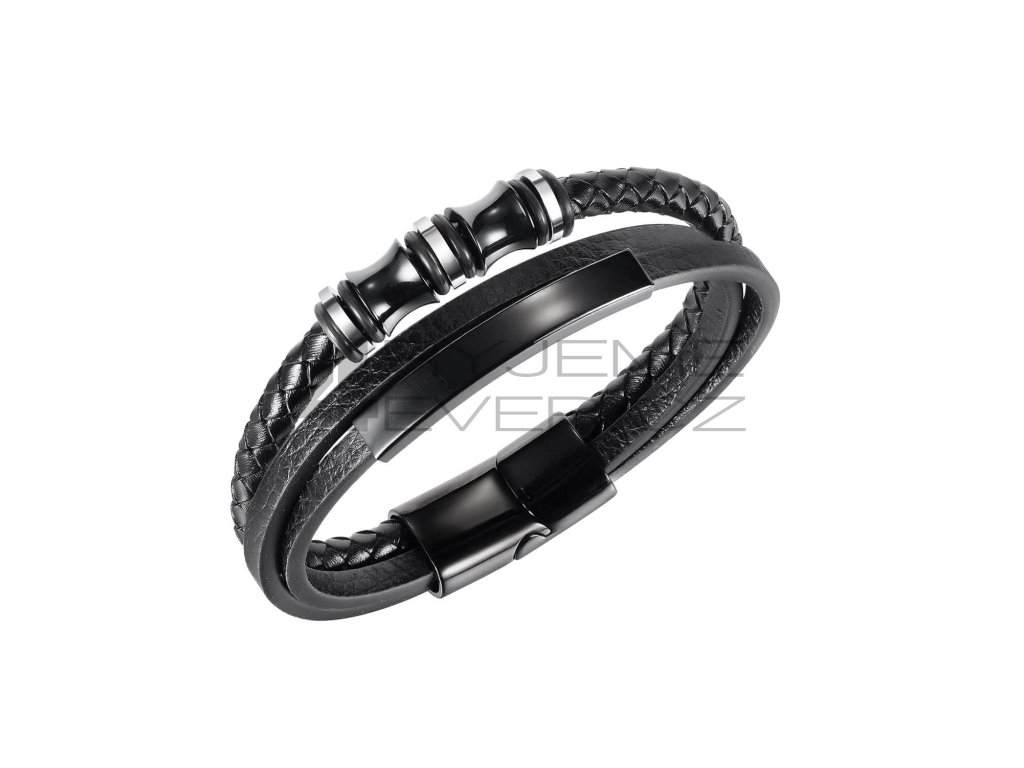 Kožený náramek s ocelovou sponou PH-1466B