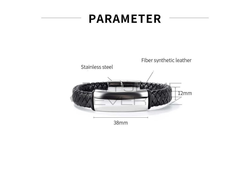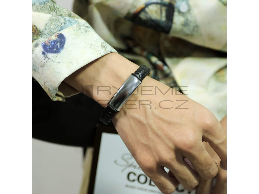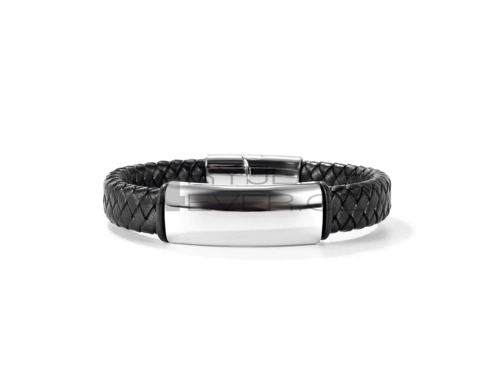 Kožený náramek se sponou s chirurgické antialergické oceli 316L. Vhodný na gravírovaní textu, loga. Šířka náramku 12mm, délka 21,5cm. Úprava délky- zkrácení za poplatek 99,-.