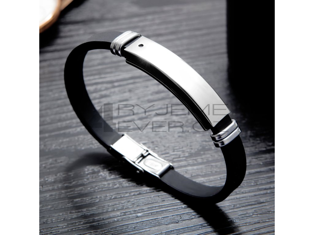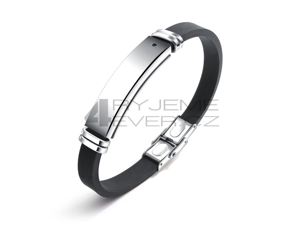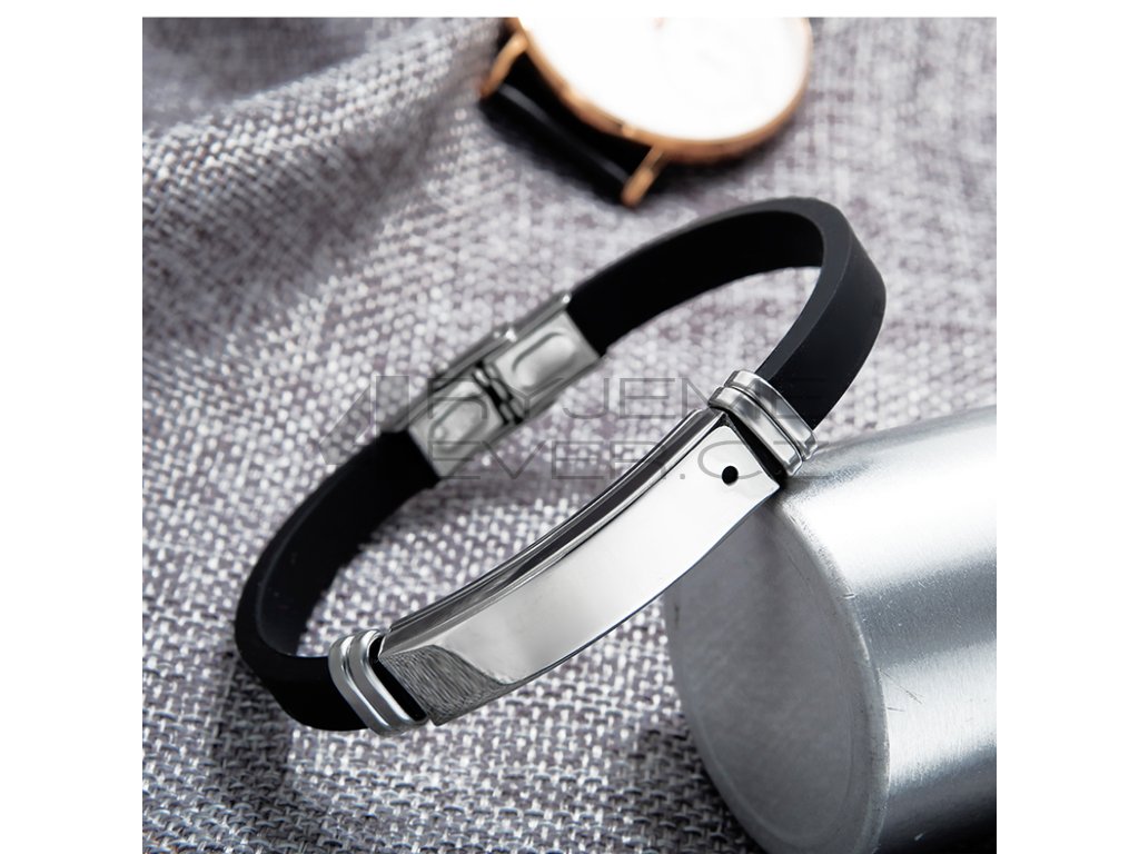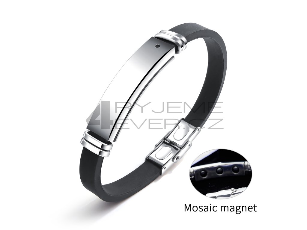 Náramek vhodný na gravírovaní textu, loga. Chirurgická antialergická ocel 316L a kombinovaný řemínek ze silikonu. Pod ploškou náramku jsou magnety. Šířka náramku 6mm a délka 20cm /lze jednoduše zkrátit/.