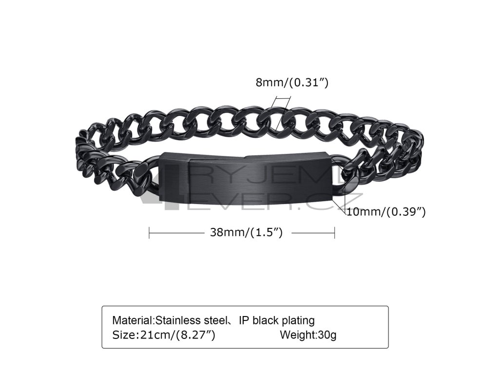 Ocelový náramek z chirurgické antialergické oceli 316L. Vhodný na gravírovaní textu, loga. Šířka náramku 10mm, délka 21cm. Upozornění- náramek nelze zkrátit!!!
