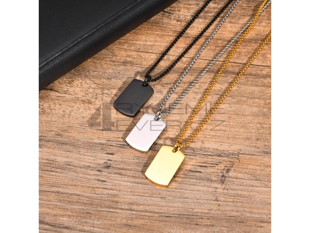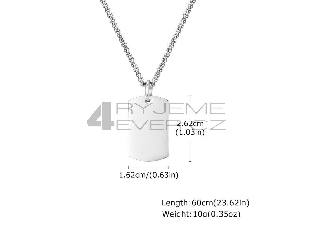 Ocelový přívěsek s řetízkem z chirurgické antialergické oceli 316L. Vhodný na gravírovaní krátkého textu, loga i fotografie. Rozměry viz. fotografie v galerii produktu.