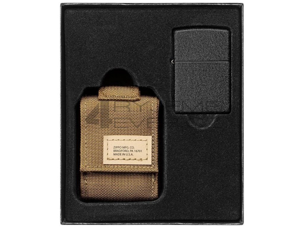 - Součástí sady je hnědé taktické pouzdro a zapalovač 26075 Black Crackle™