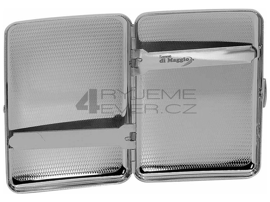 Pouzdro na cigarety Lucca di Maggio kovové s pružinou. Klasické cigarety 16 ks, slim cigarety cca 20 ks. Pouzdro vhodné na gravírování textu, loga i fotografie. Součástí je reprezentativní dárkový box.