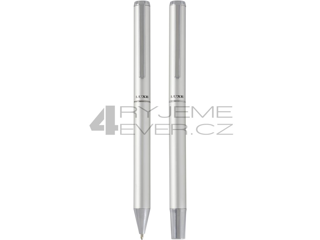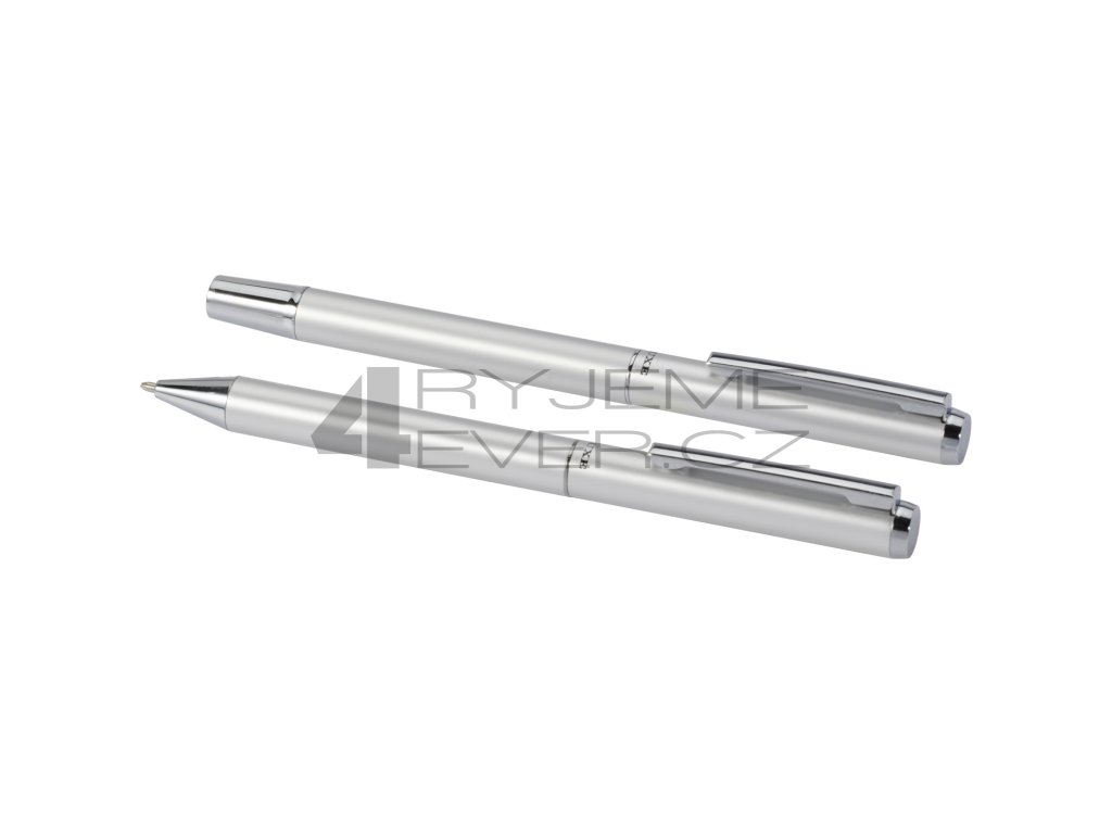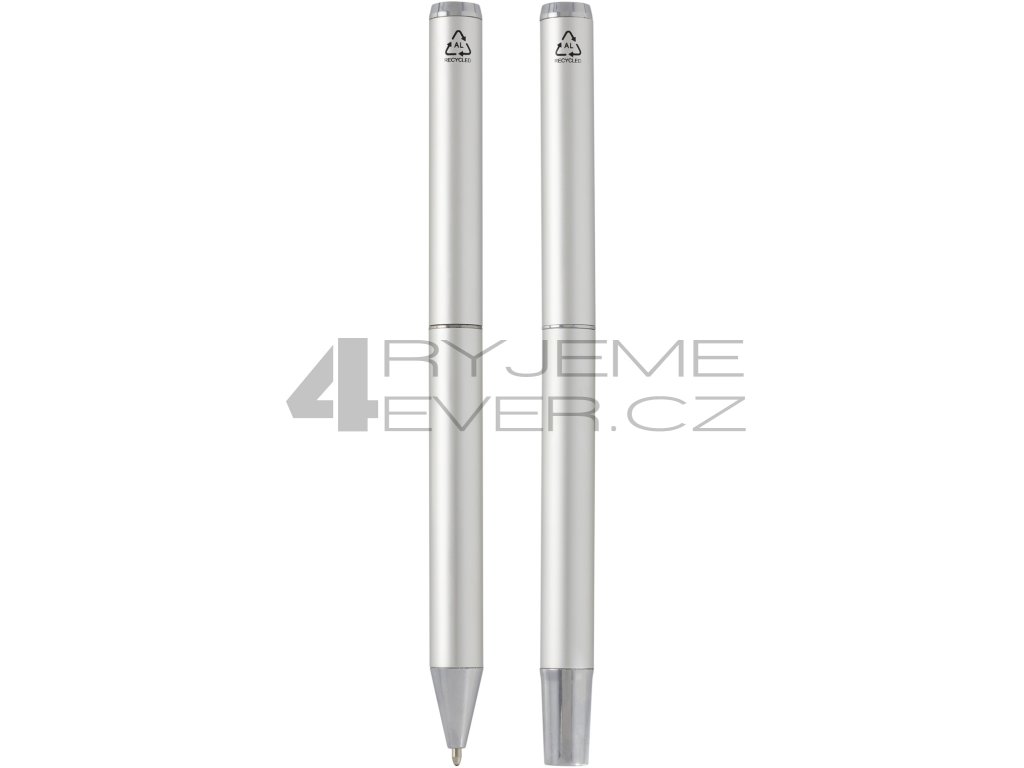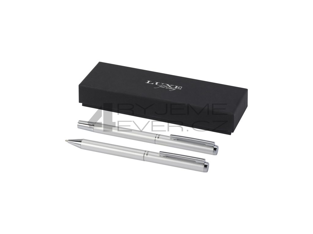 Sada kuličkového pera a pera typu roller je vyrobena z matně barevného eloxovaného recyklovaného hliníku s lesklými chromovanými doplňky. Hliník je vysoce recyklovatelný materiál a výběrem této sady per můžete podpořit udržitelnější postupy výroby a dát nový život vyřazeným hliníkovým materiálům. Tato pera slouží jako praktická a udržitelnější možnost pro jednotlivce a organizace, kteří hledají psací potřeby šetrné k životnímu prostředí. Barva inkoustu pera černá. Zabaleno v dárkové krabičce "LUXE". Cena s gravírováním je za celou sadu.