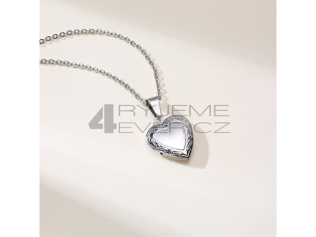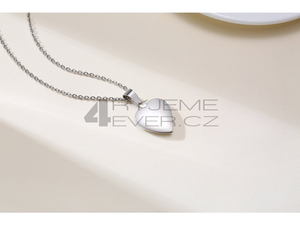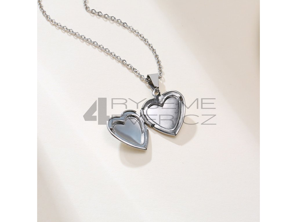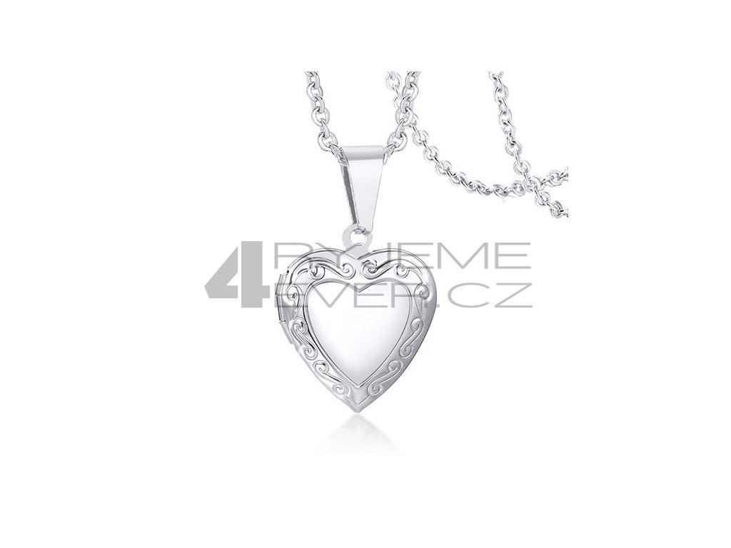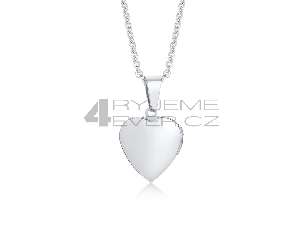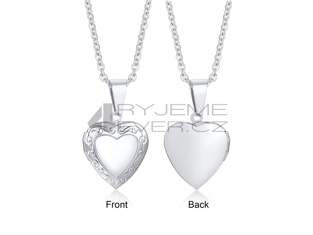 Ocelový přívěsek s řetízkem z chirurgické antialergické oceli 316L. Vhodný na gravírovaní textu, loga ze zadní strany. Fotografie se vkládá dovnitř přívěsku, tisk a vložení je na zákazníkovi. Tuto službu nezajišťujeme!!! Velikost srdíčka 19x23mm. Délka řetízku 50cm.