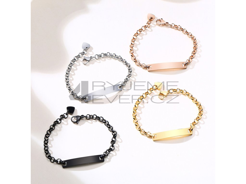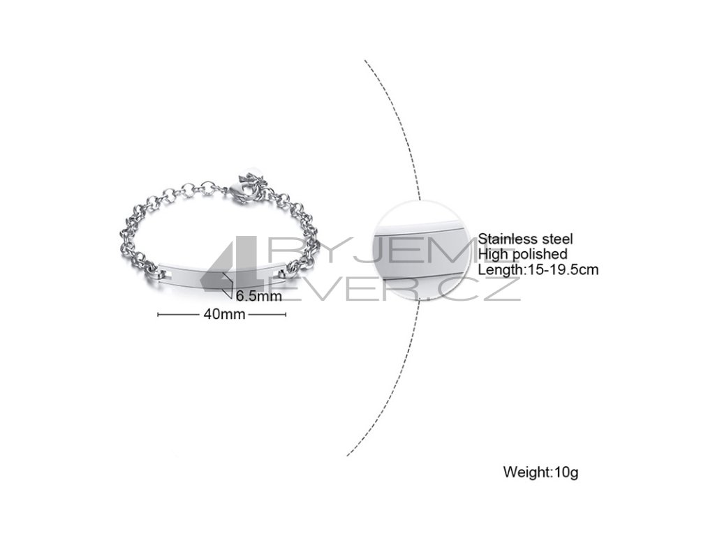 Ocelový náramek z chirurgické antialergické oceli 316L. Vhodný na gravírovaní textu, loga. Šířka náramku je 6,5mm a nastavitelná délka 15-19,5cm.