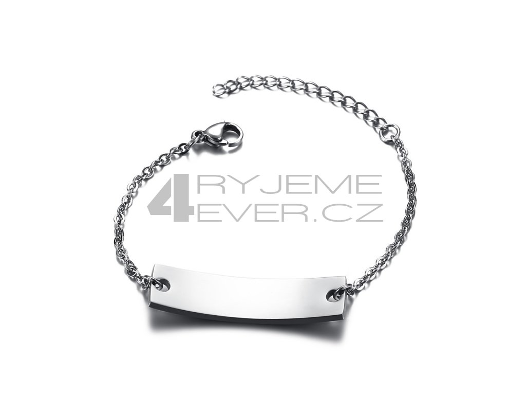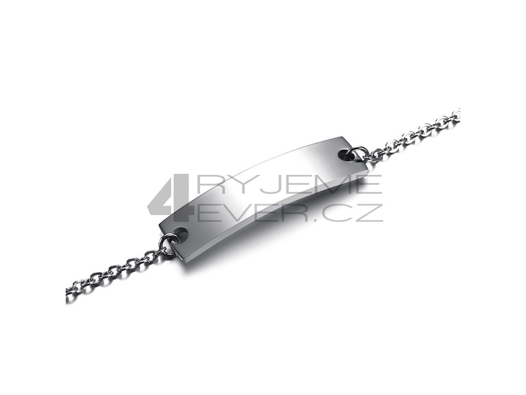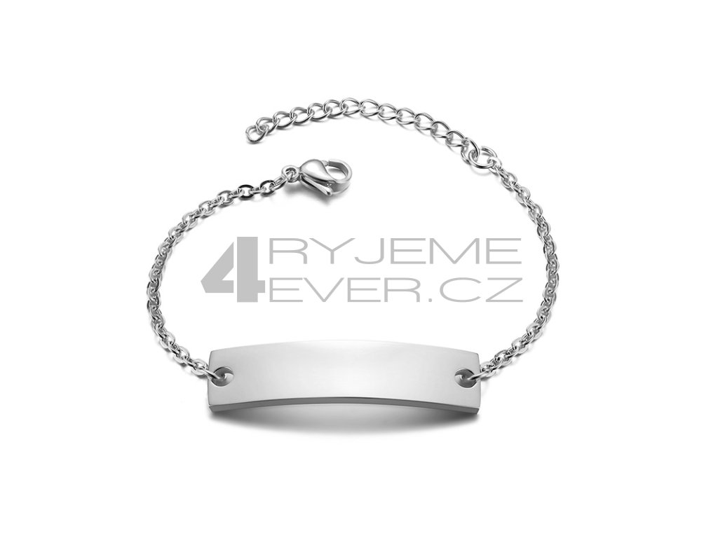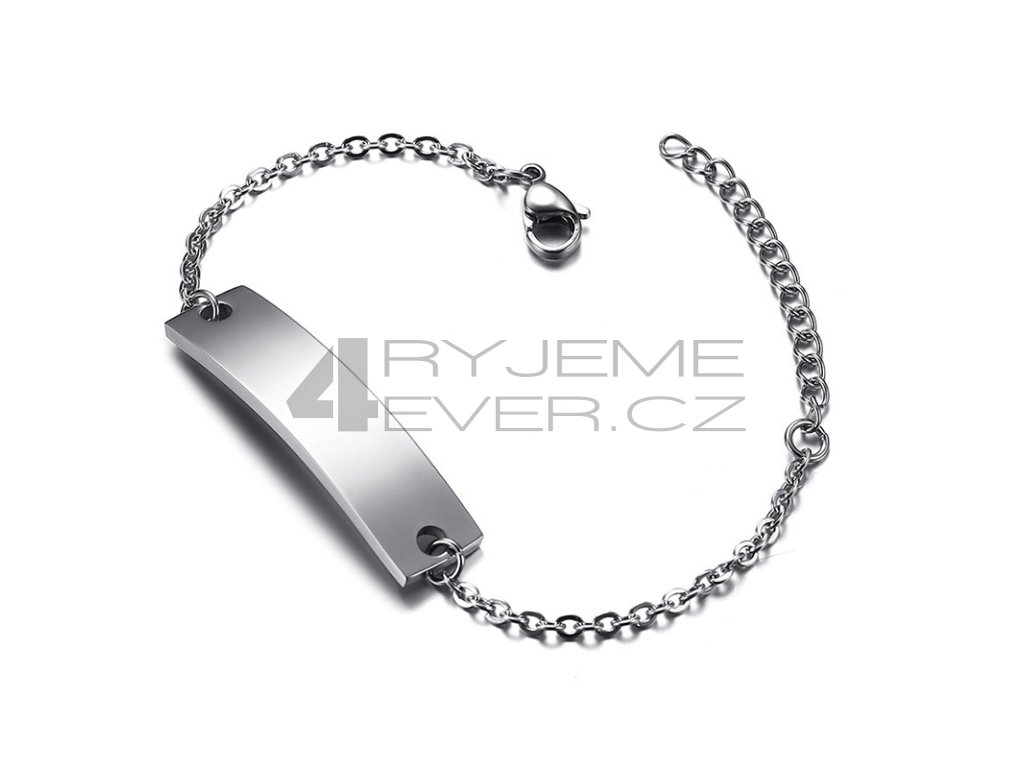Ocelový náramek z chirurgické antialergické oceli 316L. Vhodný na gravírovaní textu, loga. Šířka plošky náramku je 10mm a nastavitelná délka 15-19cm.