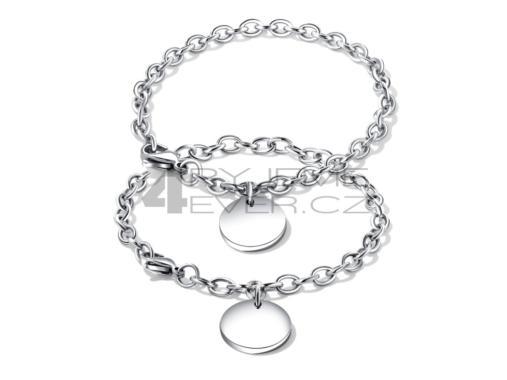 Ocelový náramek z chirurgické antialergické oceli 316L. Vhodný na gravírovaní textu, loga. Průměr přívěsku je 16,5mm. Délka náramku 21cm /lze zkrátit/.