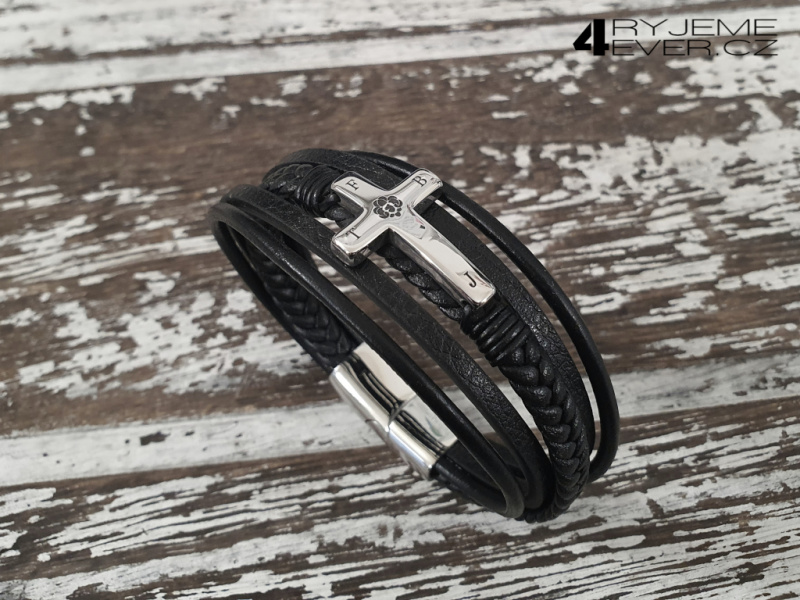 Kožený náramek s ocelovou sponou PH-1511S