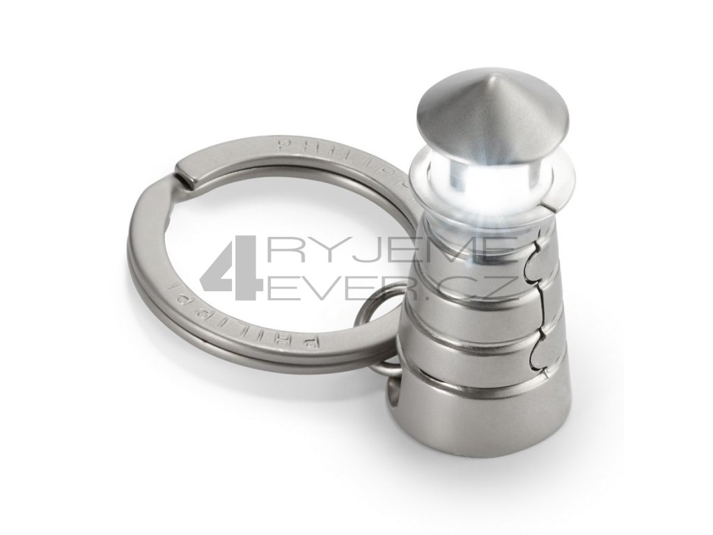 Značková klíčenka Philippi prémiové kvality a designu. Materiál matný nikl, svítící LED.