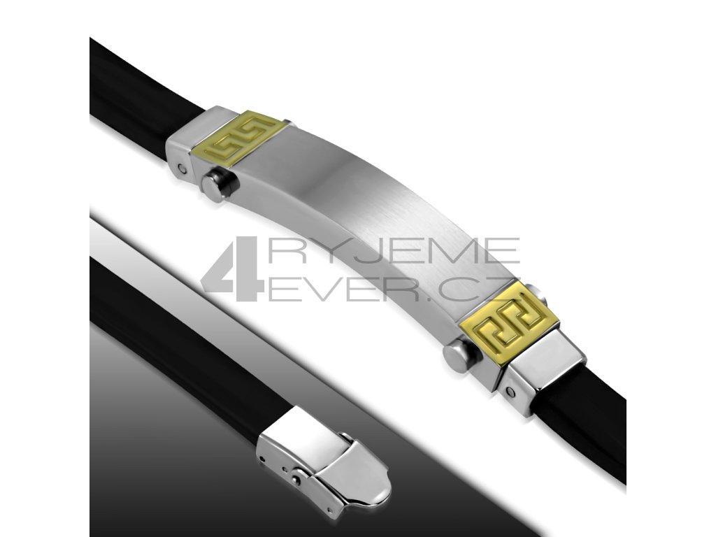 Náramek vhodný na gravírovaní textu, loga. Chirurgická antialergická ocel 316L a kaučuk. Šířka náramku 8mm a délka 22cm/lze zkrátit/.