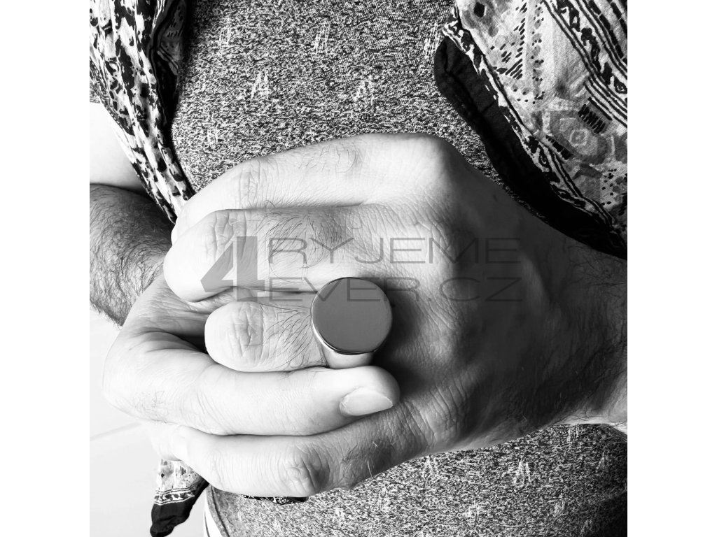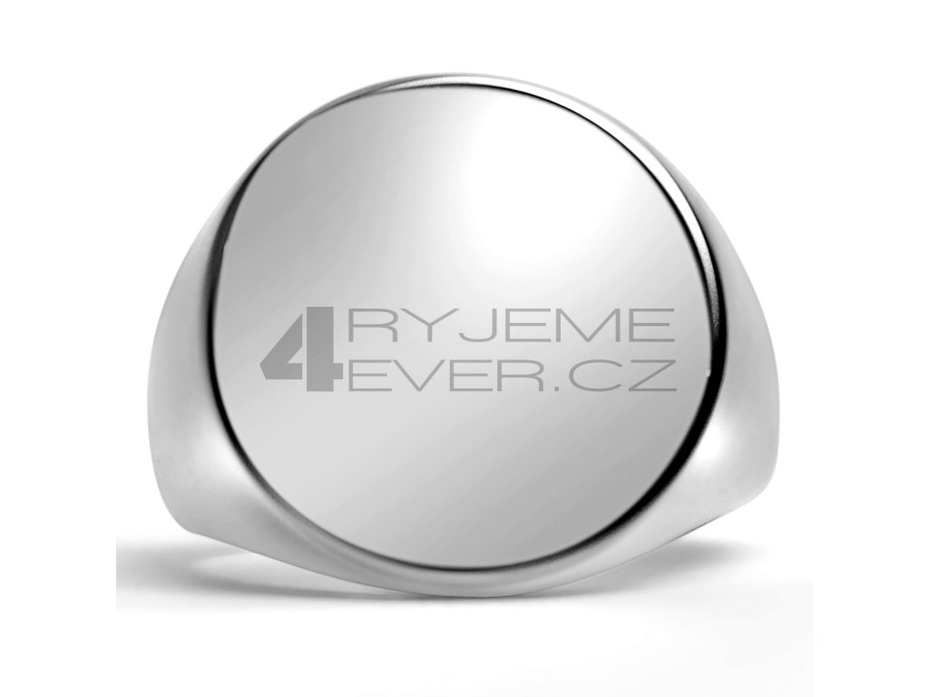 Kvalitní masivní prsten z chirurgické antialergické oceli 316L. Kruhová plocha o průměru 19mm vhodná na gravírování textu nebo loga.