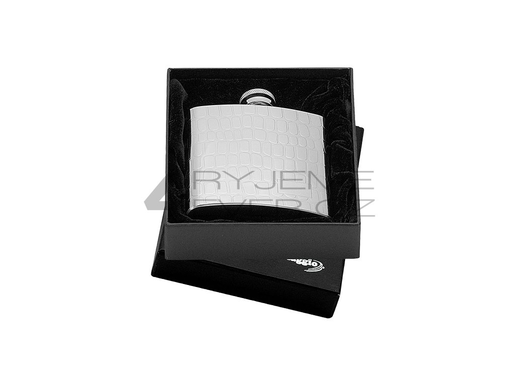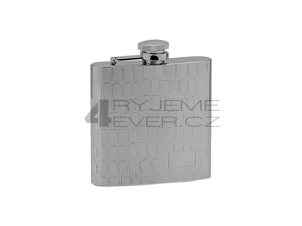 Leštěná nerezová ocel. Obsah 180ml. 95x108x25mm. Součástí balení dárková krabička se sametem.