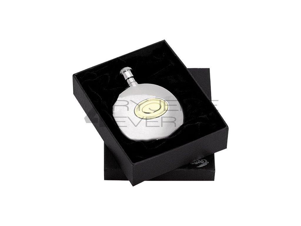 Leštěná nerezová ocel. Obsah 95ml. Rozměr 90x110x25mm. Součástí balení dárková krabička se sametem.