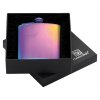 Anodizovaná nerezová ocel. Obsah 175ml. 93x115x23mm. Součástí balení dárková krabička se sametem.