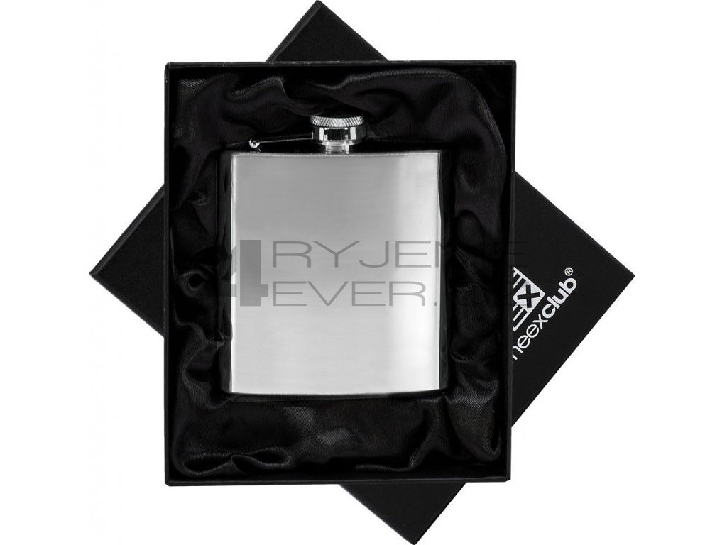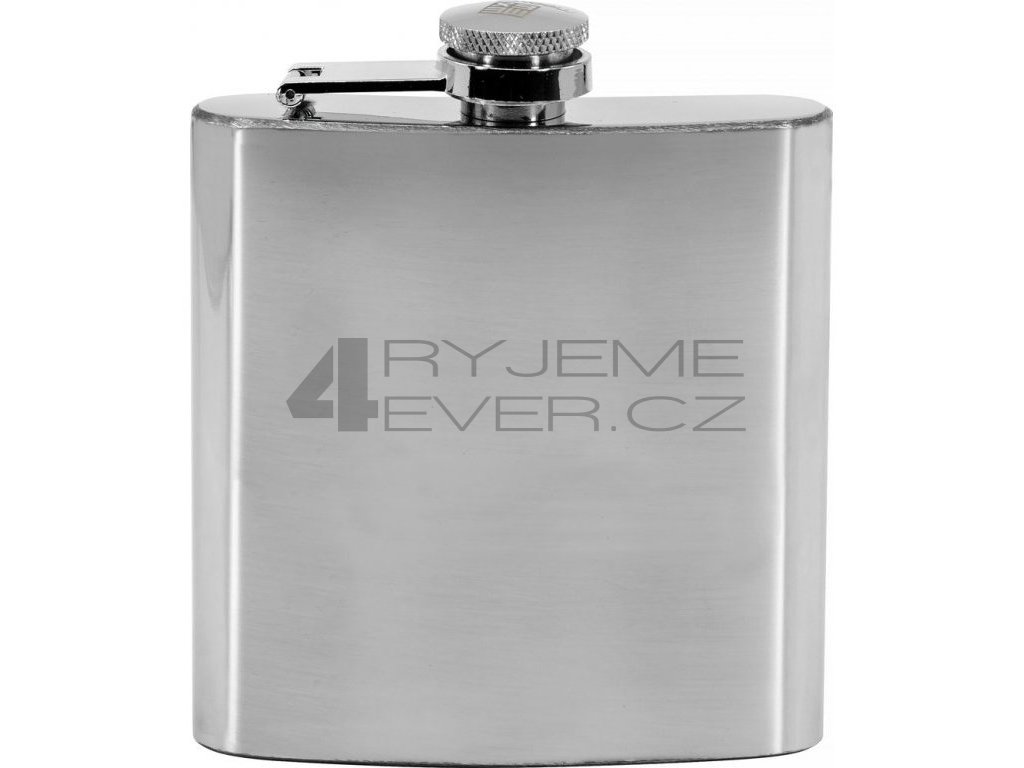 Leštěná nerezová ocel. Obsah 175ml. 93x115x23mm. Součástí balení dárková krabička se sametem.