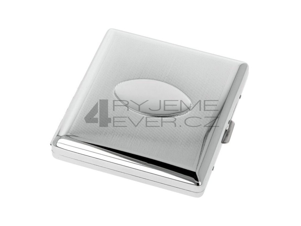 Pouzdro na cigarety kovové s pružinou na klasické cigarety (King Size)- cca 20ks. V chromovém lesklém provedení je zdobené gravírovanými ornamenty. Zadní a přední strana pouzdra nejsou stejná. Vhodné na gravírování textu, loga i fotografie.