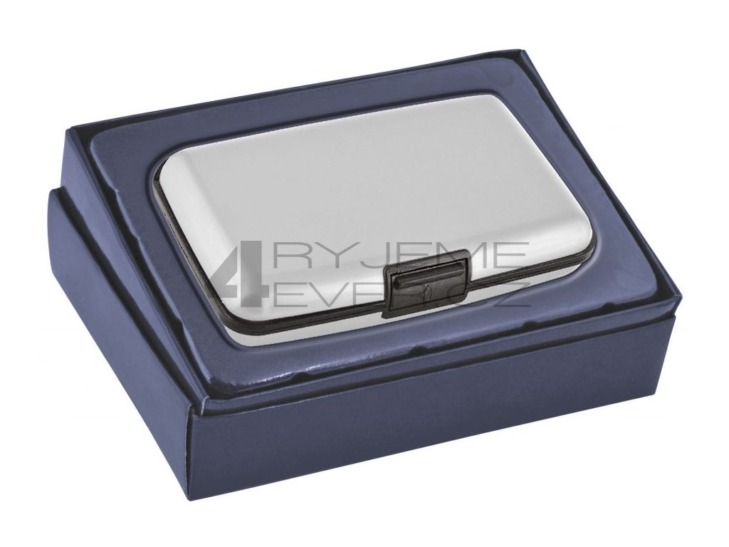 Hliníkové pouzdro na vizitky s vnitřním organizérem. Vhodné na gravírování textu nebo loga. Součástí balení je dárkový box.