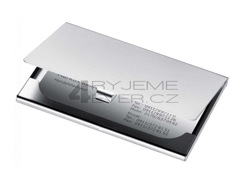 Kovový vizitkář z broušeného kovu vhodný na gravírování textu, loga nebo fotografie.